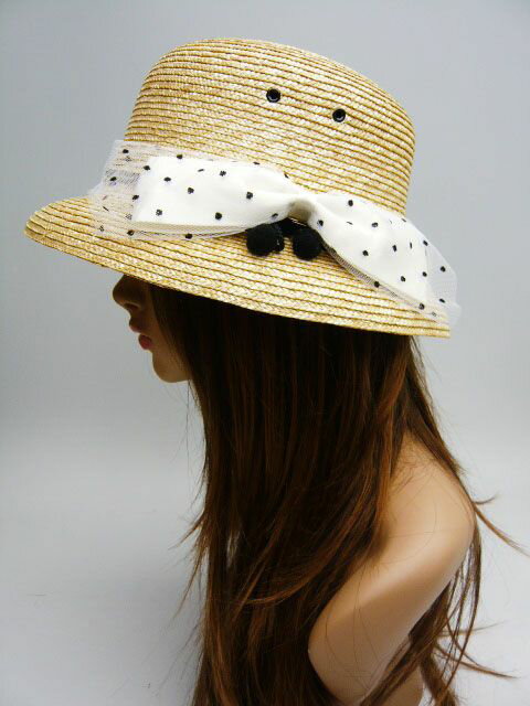 水玉りぼん2色付♪つば広帽子・ハット・日よけ★クロッシュ★麦わら・天然素材